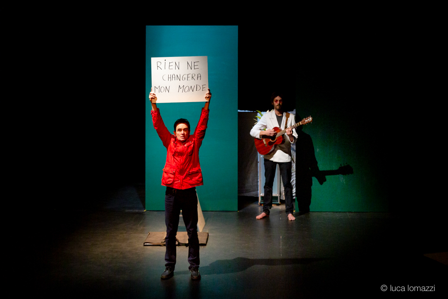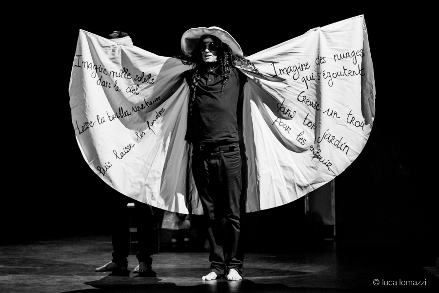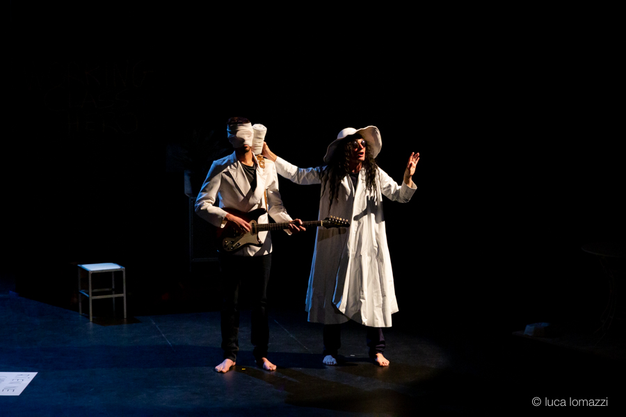 "You may say I’m a dreamer, But I’m not the only one, I hope some day you’ll join us, And the world will live as one … chantait John Lennon mort il y a bientôt quarante ans ! Et si Imagine n’était pas juste une ritournelle mais une injonction ? Quel écho rencontre la chanson de Lennon aujourd’hui ? Nigel Hollidge et Alan Corbel nous apportent leur réponse avec J’(ohn) imagine. Pour raconter leur histoire, Nigel, le comédien, se fait chanteur, et Alan, l’auteur-compositeur-interprète n’hésite pas à devenir comédien. Les chansons de Lennon rencontrent ici les propres compositions d’Alan, tandis que sont convoquées les figures légendaires de John, Paul et Yoko" comme l'évoque Nigel Hollidge, auteur et comédien.